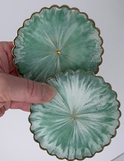 Enjoy a pop of color with this lovely little resin trinket dish. It was created using a free form and stretch method when the resin is partially set. This adds frilly little details that are both fun and useful for keeping track of your jewelry or other cherished items.