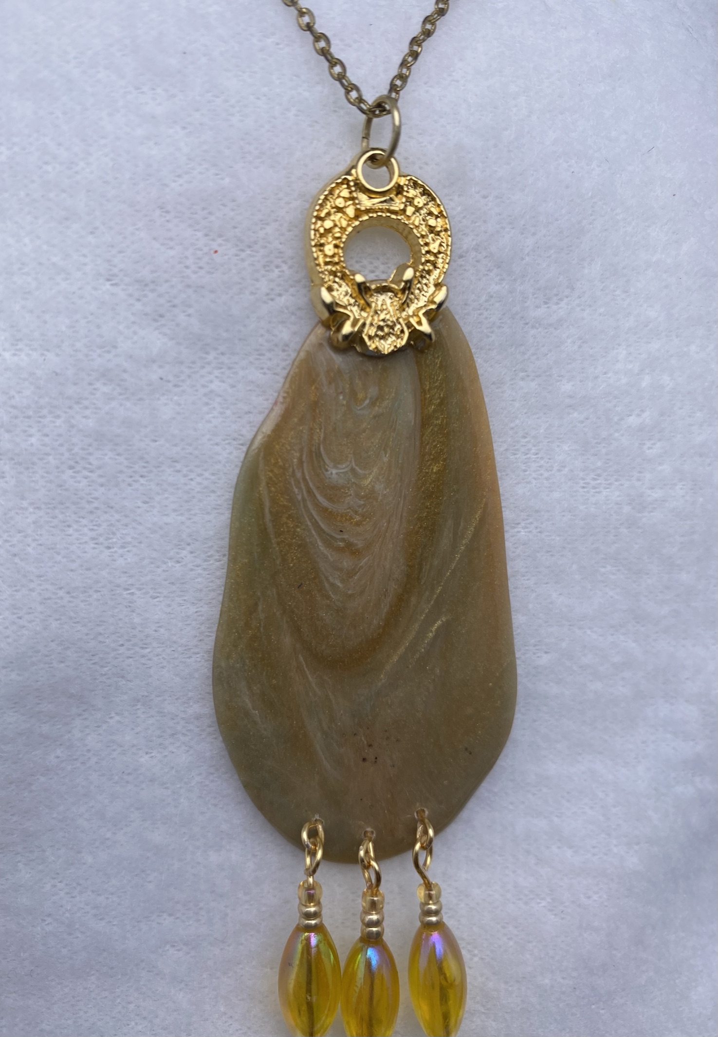 Be the first to review “Iridescent yellow, tan and gold Resin pendant” Cancel reply