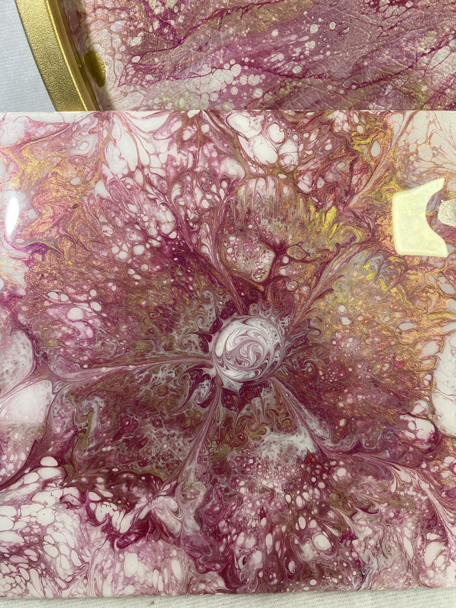 Art with a purpose! This beautiful serving tray and trivet set will be a hit at your next gathering. This is an acrylic pour with a top coat of heat resistant resin. This duo would make a perfect gift or awesome display for your favorite treats. Custom sets available. Click on the “contact me” link and lets chat. Remember no two are exactly alike.